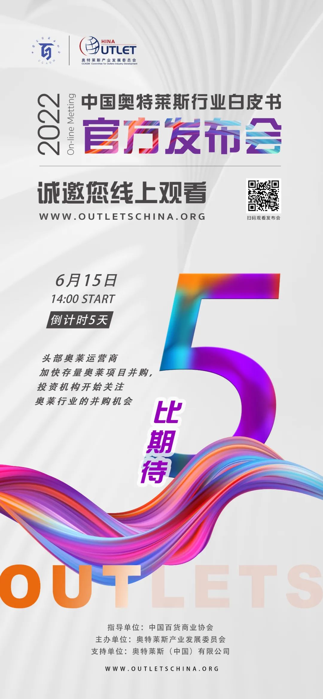 2022年6月15日14:00,《2022年中國奧特萊斯行業(yè)白皮書》線上發(fā)布會即將正式開始,本次發(fā)布會,將對國內(nèi)零售市場及奧萊產(chǎn)業(yè)引入中國20年發(fā)展的經(jīng)驗(yàn)及機(jī)遇做出全新解讀。
