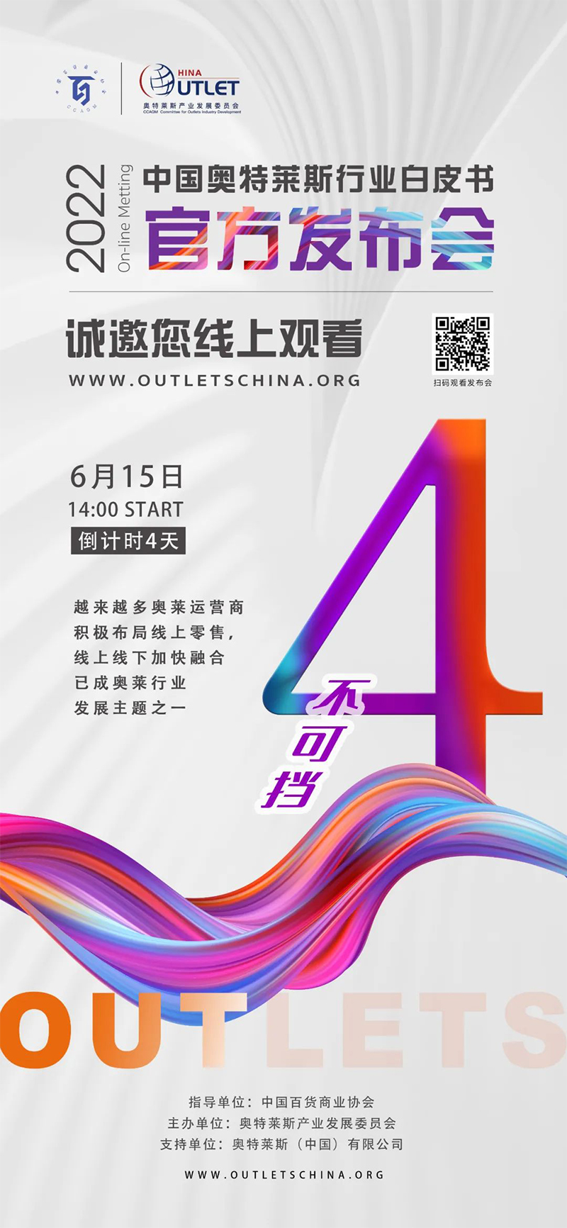 2022年6月15日14:00,《2022年中國奧特萊斯行業(yè)白皮書》線上發(fā)布會(huì)即將正式開始,本次發(fā)布會(huì),將對(duì)國內(nèi)零售市場(chǎng)及奧萊產(chǎn)業(yè)引入中國20年發(fā)展的經(jīng)驗(yàn)及機(jī)遇做出全新解讀。