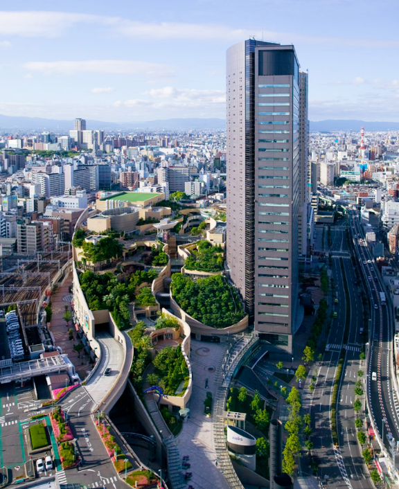 日本難波公園是一座令人驚嘆的都市商業(yè)立體公園,盡管其交通不便,到達性弱,開發(fā)條件較差,但卻因“公園”的理念絕處逢生。從地面直到8層,一座小山一般層層疊疊的綠色坡地一路延綿而上,種滿了各種綠植和花朵,并且還形成了大大小小的退臺式院落,容納著各種小餐廳和公共空間。遠(yuǎn)遠(yuǎn)望去,在一片城市的鋼筋水泥森林里,難波公園如同綠洲一般的存在。