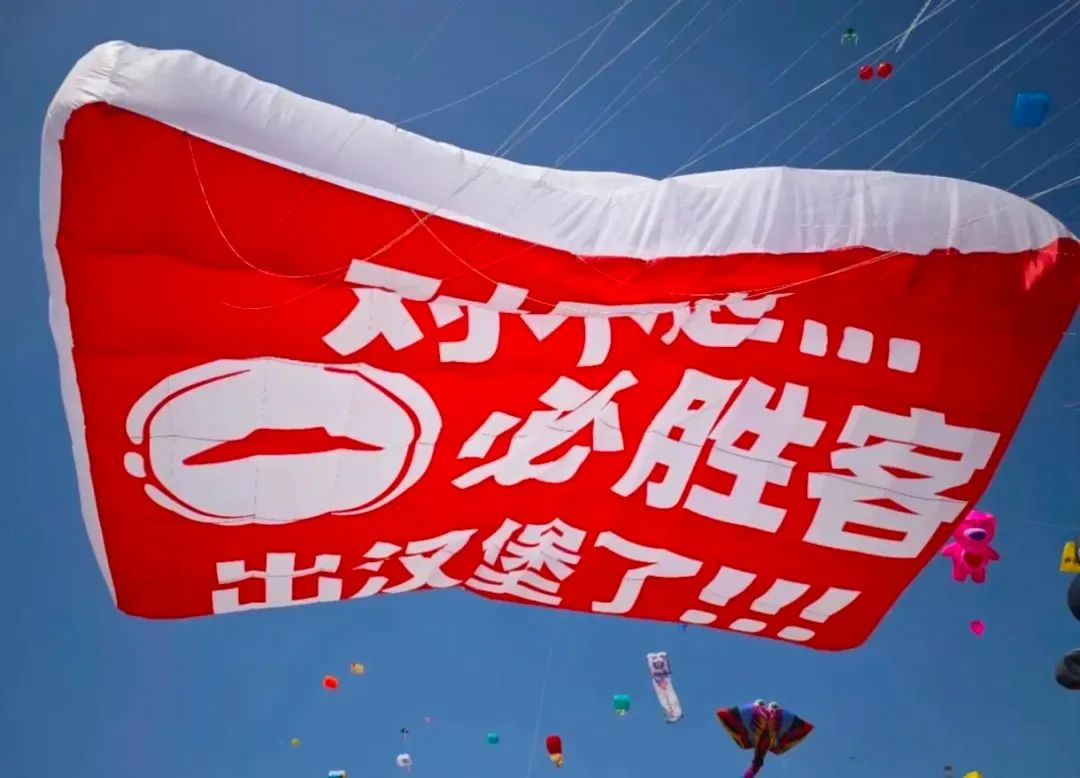去年的風(fēng)箏節(jié),眾多品牌紛紛參與“發(fā)瘋營銷”的浪潮,將這一傳統(tǒng)活動推向了新的高峰。在風(fēng)箏節(jié)期間,淘寶連續(xù)兩年推出的巨型“放屁”風(fēng)箏成為焦點(diǎn)。這種打破常規(guī)、充滿娛樂性的廣告方式,不僅吸引了眾多目光,更讓年輕人在歡笑中釋放了壓力。而必勝客則通過簡潔的大字報(bào)形式,宣布“必勝客推出漢堡”,這種直接而簡單的營銷手段,同樣給人留下了深刻的印象。