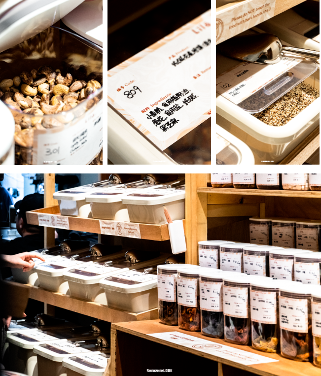品牌整體適合喜歡搗鼓酸奶碗這類輕食的消費者,品類多,逛一次基本就能把材料買齊。從店名也能看出,Lila推崇零浪費、減碳等環(huán)保理念,因此來這里購物,是需要自帶容器。按需取量,稱重結算。
